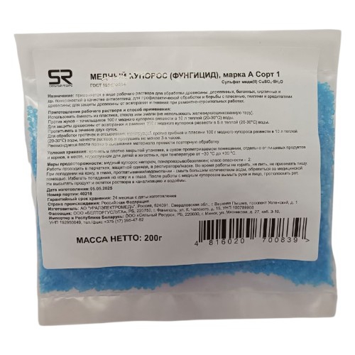 - эффективное средство для борьбы с различными инфекционными заболеваниями копыт животных. Рекомендуемая концентрация для обработки - 5-10%. Антисептические свойства медного купороса сильно снижаются при попадании навоза и грязи в ванну.